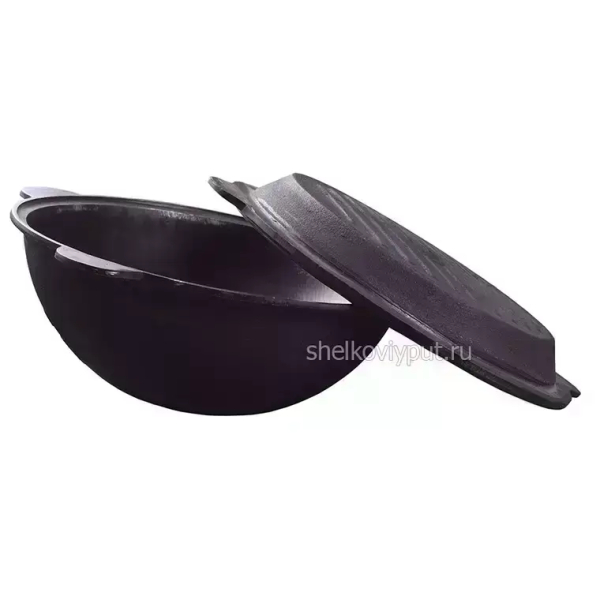 КАЗАН ЧУГУННЫЙ 12Л УЗБЕКСКИЙ (ПЛОСКОЕ ДНО) С КРЫШКОЙ-СКОВОРОДОЙ