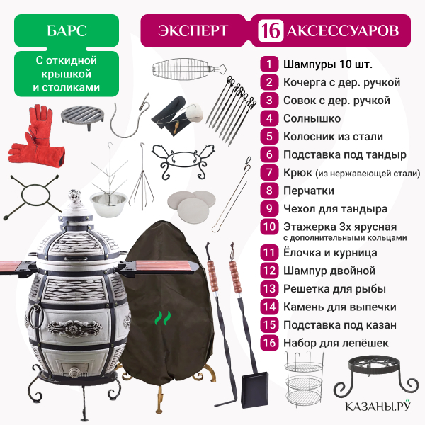 Набор "Эксперт": Тандыр "Барс" с откидной крышкой, со столиками + аксессуары