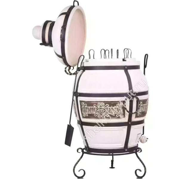 Печь поставляется с набором из 8 шампуров, кованой подставкой под тандыр, чугунным колосником, кочергой и совком. При необходимости можно выбрать модель в расширенной комплектации или подобрать аксессуары, которые расширяют перечень доступных блюд.